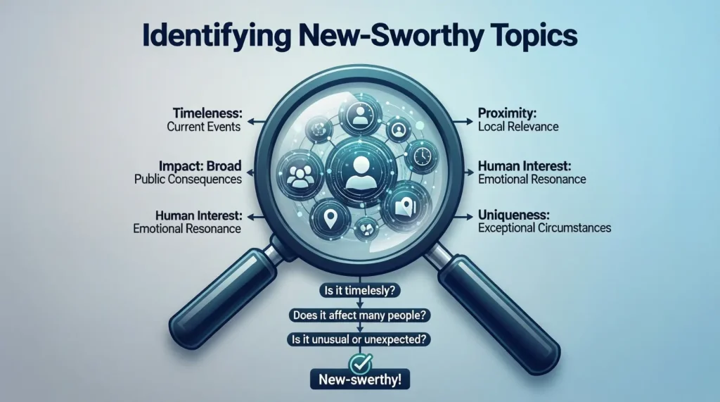 A newsworthy topic often affects many people or explains something significant. Examples include major policy changes, natural events, or important discoveries.